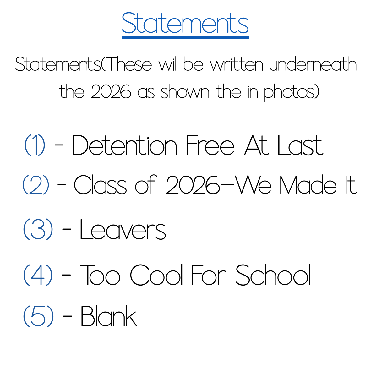 - You also have the option to add 1–5 short statements printed underneath the 2026, or you may choose to leave this area blank the choice is yours.