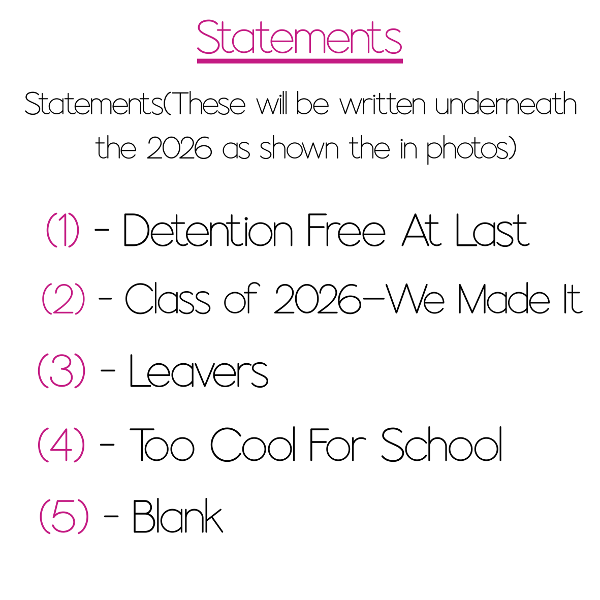 - You also have the option to add 1–5 short statements printed underneath the 2026, or you may choose to leave this area blank the choice is yours.