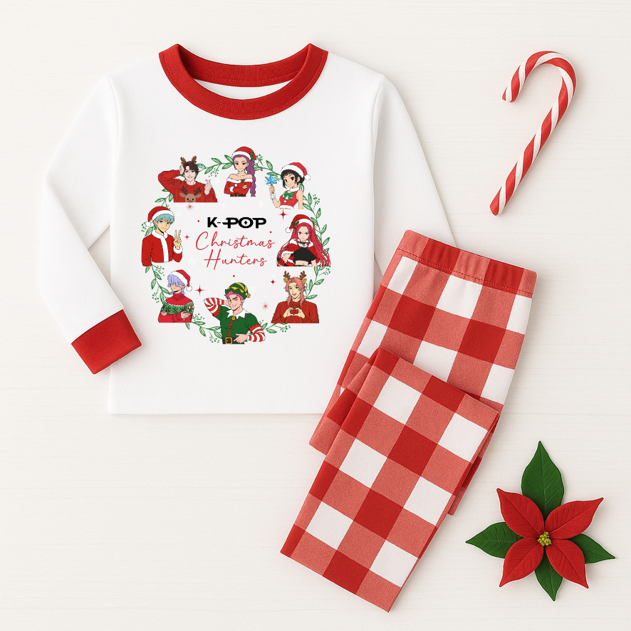 If your little one loves all things K-Pop, these adorable Christmas pyjamas are the perfect festive treat! Featuring a bright and colourful K-Pop–inspired illustration with stylish Christmas outfits, this design is guaranteed to make any fan smile.