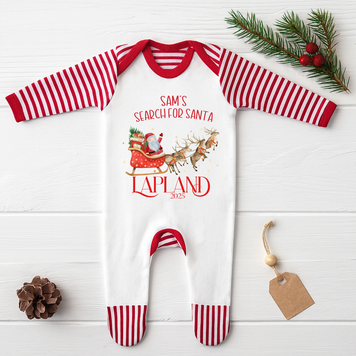 Gorgeous Lapland pyjamas, babygrow and bib ready to be personalised just by you……